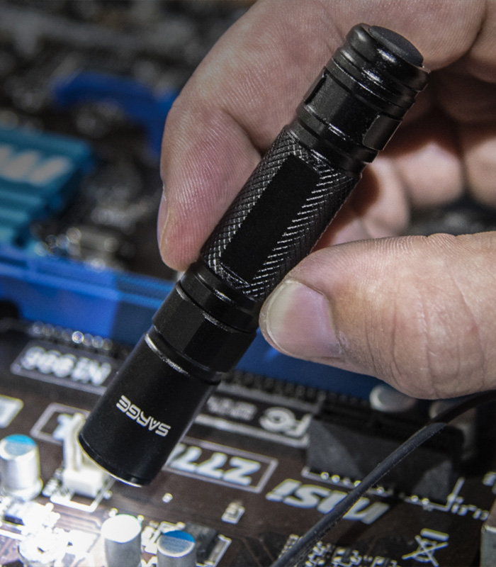 The Inspector is an ultra-compact, LED penlight that fits in the palm of your hand or comfortably in your pocket. This penlight delivers 150 lumens and includes a pocket clip and on/off tail switch. The black anodized aluminum body is both sleek and durable for every day use.